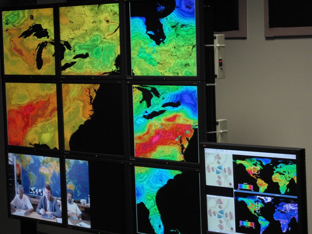 - During the week of November 8, 2004, Earth science data sets pre-provided by GSFC's Scientific Visualization Studio (SVS) were retrieved across the NLR in real time from UIC and UCSD OptIPuter servers in Chicago and San Diego, respectively, and from the GSFC servers in McLean, and displayed at the SC2004 in Pittsburgh. A set of six photos, provided by Randall Jones (GST) of the SVS showing GSFC's presence in the NLR booth with the OptIPuter-provided 15-screen tiled display cluster during SC2004, is provided. An informal announcement (pdf, 36KB) identifying NASA GSFC as one of the first 10 users of the NLR is also provided.